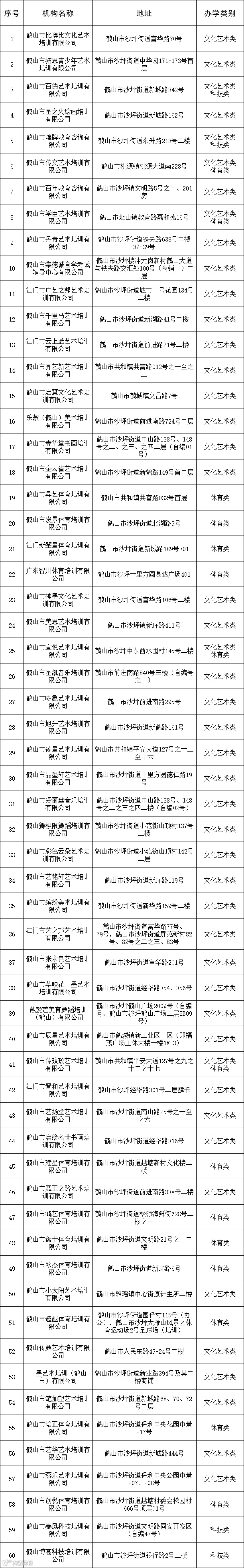 为进一步巩固我市“双减”工作成果,方便广大学生及家长查询和选择合法合规教育培训机构,现公布我市由教育行政部门审批监管的证照齐全校外教育培训机构名单(截至2024年10月28日)。