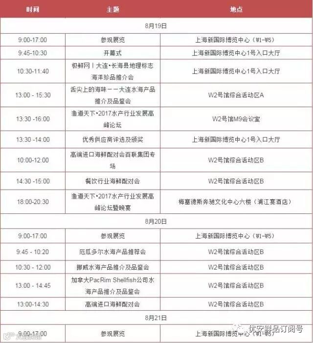 2017年8月19-21日,第十二届上海国际渔业博览会暨第十二届上海国际水产养殖展览会World Seafood Shanghai(SIFSE)将继续在上海新国际博览中心(浦东新区龙阳路2345号)举办。展会深度演绎“专业B2B水产贸易”,完美联结生产加工方、经销分销商以及采购消费终端这三大群体,为专业观众提供一站式采购的平台。同时,展会与第八届上海国际餐饮食材展览会同期举行,吸引到了逾1,000多家中外企业参展,展出规模达58,000平方米,这场超豪华的水产海鲜盛会即将拉开帷幕,这个秋天,我们选择再度绽放!