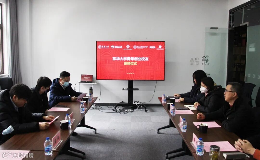 2023年1月11日下午,我校青年创业校友捐赠仪式在尚创汇·东华大学大学生创新创业孵化基地举行。创业校友上海谋乐网络科技有限公司创始人罗清篮,上海玖赐品牌管理有限公司创始人娄辰,上海东华大学教育发展基金会副理事长兼秘书长吴保根,上海东华镜月资产经营有限公司党总支书记、董事长刘春雁,上海东华镜月资产经营有限公司总经理李俊,上海东华大学科技园企业管理有限公司总经理徐晓冬以及科技园孵化体系相关载体负责人出席了捐赠仪式。