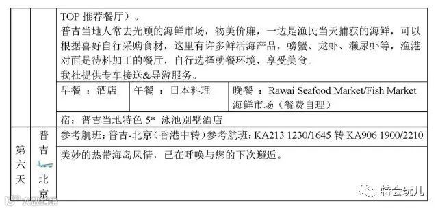 普吉岛5晚6日游!