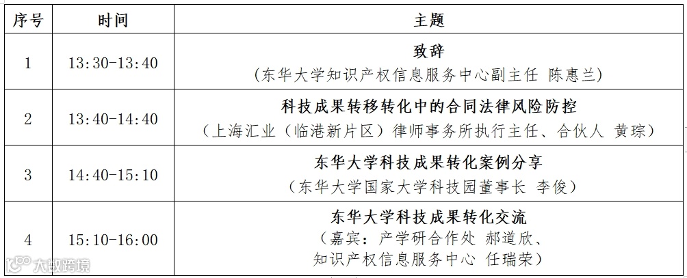 为贯彻落实党的二十大精神,深入实施科教兴国战略、人才强国战略、创新驱动发展战略,推动创新链、产业链、资金链、人才链深度融合,提高科技成果转化和产业化水平,提升师生法律意识,加强知识产权保护,加快我校科技成果转化与产业化应用,定于2024年5月17日下午举办东华大学科技成果转化师生专项培训活动。