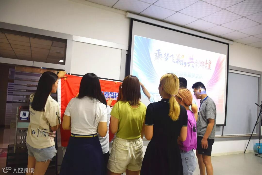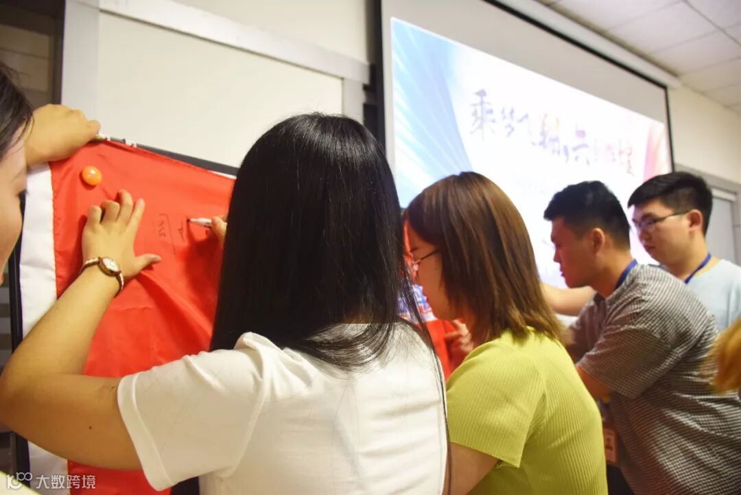 集团王积华老师和付乔老师为梦之队授予荣誉旗帜,梦之队不辜负公司的期望,不辜负领导的信任,在荣誉旗帜上签下自己的名字,并对着荣誉旗帜庄严宣誓。表明了梦之队坚定不移、勇往直前的决心和诚挚态度。