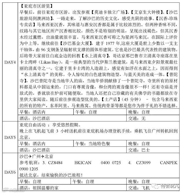 6:哥打京那巴鲁布达丹白金酒店或同级;