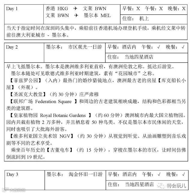 行程内所列餐食,部分飞机餐除外,(澳洲段:早餐为西式自助餐或精美早餐餐盒、午晚餐为 6菜1汤,正餐餐标澳币12元/餐;文莱段:悟饭火锅料理、马来风味餐、GK中餐,正餐餐标人民币65元/餐);