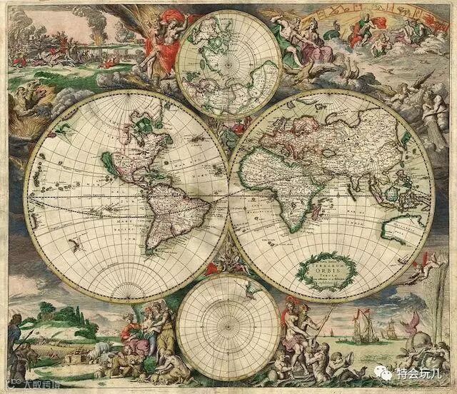 1689年绘制的世界上第一幅世界地图。
