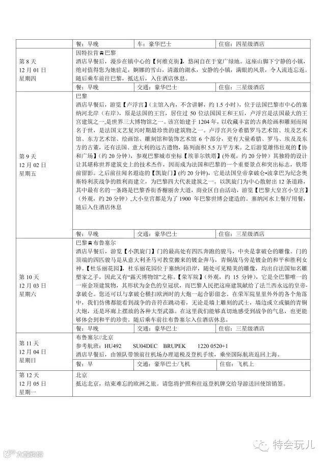 境外司机,导游服务费,全程135欧/人(在机场集合时交送机人或领队,含全程酒店建设税)。