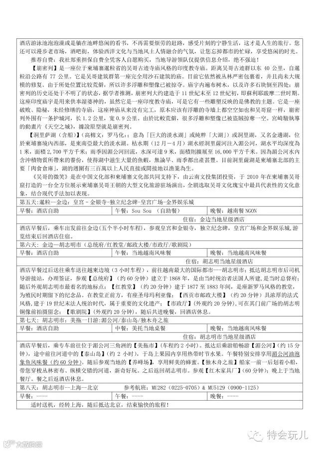 每人每天1瓶矿泉水,免费赠送遮阳草帽,吴哥窟团体纪念照每人一张,柬埔寨纪念T桖衫每人一件; -