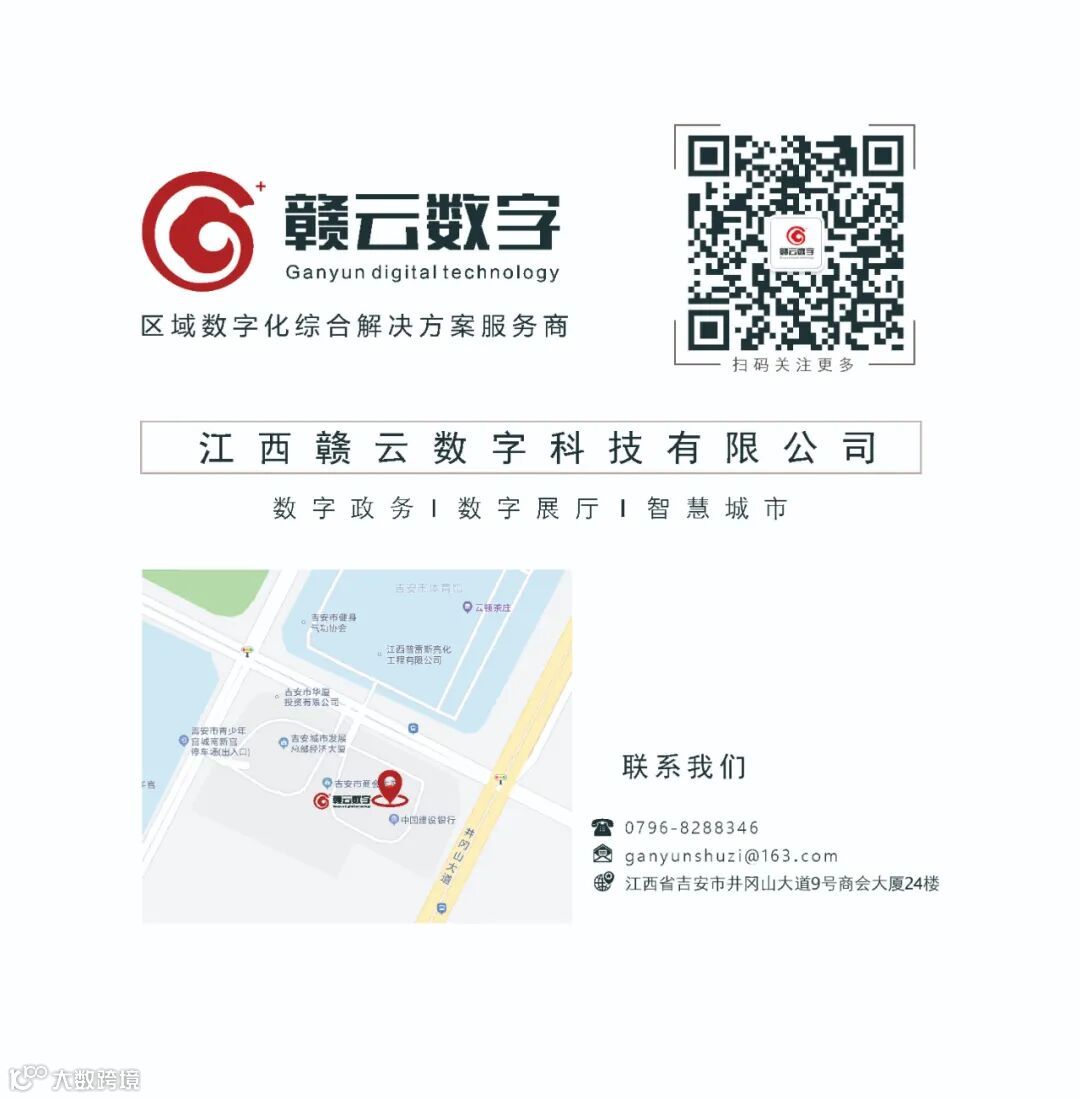 作为新时代的数字化解决方案先行者,赣云数字砥砺深耕、开拓进取,不断地融合与创新,依托服务数百家政府单位及品牌商业机构的成功经验,产品及系统广泛应用于政务服务、城市文化体验、数字展览展示、公共示范空间、智慧商业等众多领域。赣云数字拥有吉安首个数字化服务体验中心,沉浸式参与体验给观展者带来新颖的参与感、体验感和互动性,实现更好的视觉、听觉、触觉等综合性体验。将一整套产品开发及服务理念打造成一个线上、线下一体化的数字化解决方案服务体验中心。