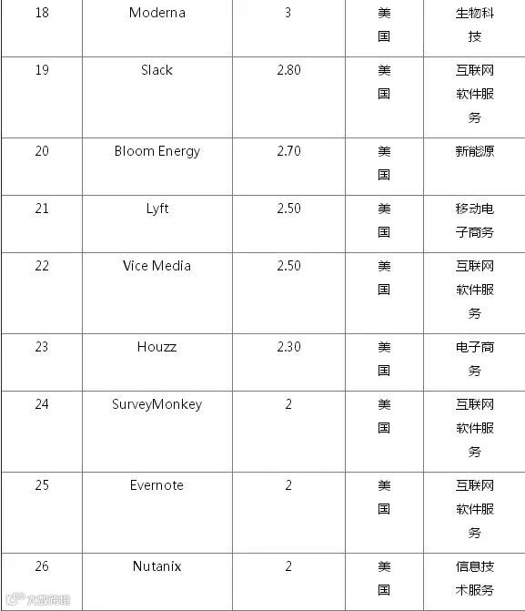 下面是这份统计的具体细节:102家估值过10亿美元的初创企业