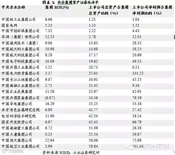 兴业证券统计了央企集团和旗下上市公司的总资产和净利润,从上市公司净利润占集团净利润比重来看,核电、电子、军工等行业央企上市公司资产注入空间更大。