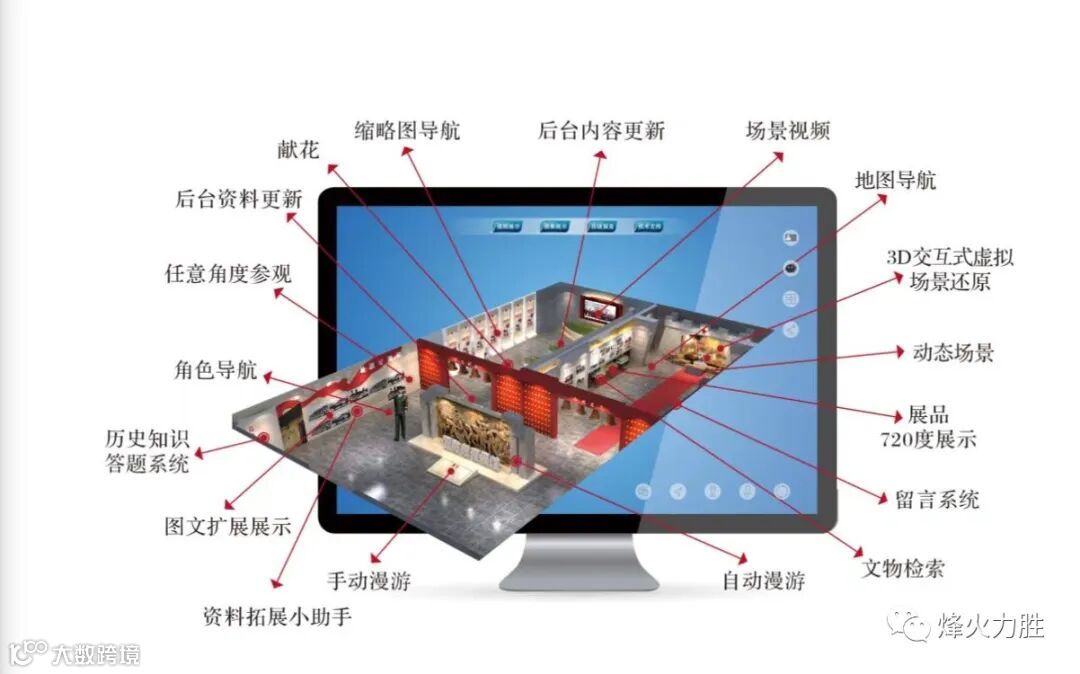 完善后的数字场馆数据量小,传播形式多样化,对系统的要求降低,可完全实现PC操作,自动漫游和人工漫游自如切换,拥有丰富的互动效果。开发的人机交互功能,实现三维漫游,满足沉浸体验,热点导航浏览操作简单方便,多场景音效和实景渲染气势恢宏。集功能性、实用性于一体的数字化场馆已然破茧而出。