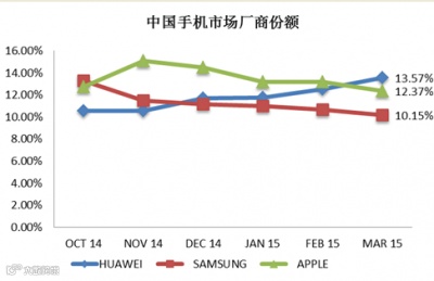 业内一些人士替华为争辩,集中在两个方面,与我上面谈的情况类似。引用GfK的数据:华为3月份国内市场第一,份额达13.57%,而前两个月份的份额也基本在11%以上,所以,认为IHS的数据是有问题的。
