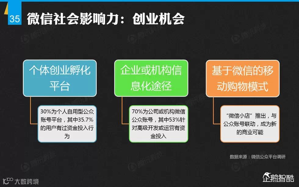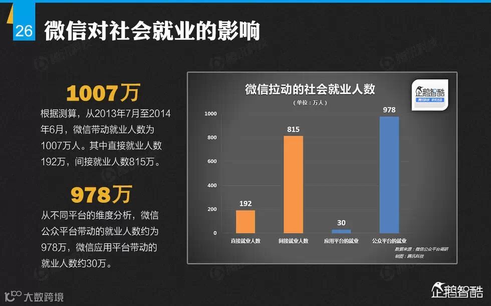 导读:导读:微信的用户都有哪些特征?有多少人直接通过微信实现就业?微信打车用户月均消费多少元?微信对社会公益带来哪