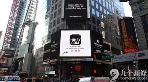 2014年10月,纽约时代广场的巨幅LED广告屏上显示出一则广告:"最大的艺术电商"。据悉打出这则广告的是一家中国艺术品交易网站--HIHEY。