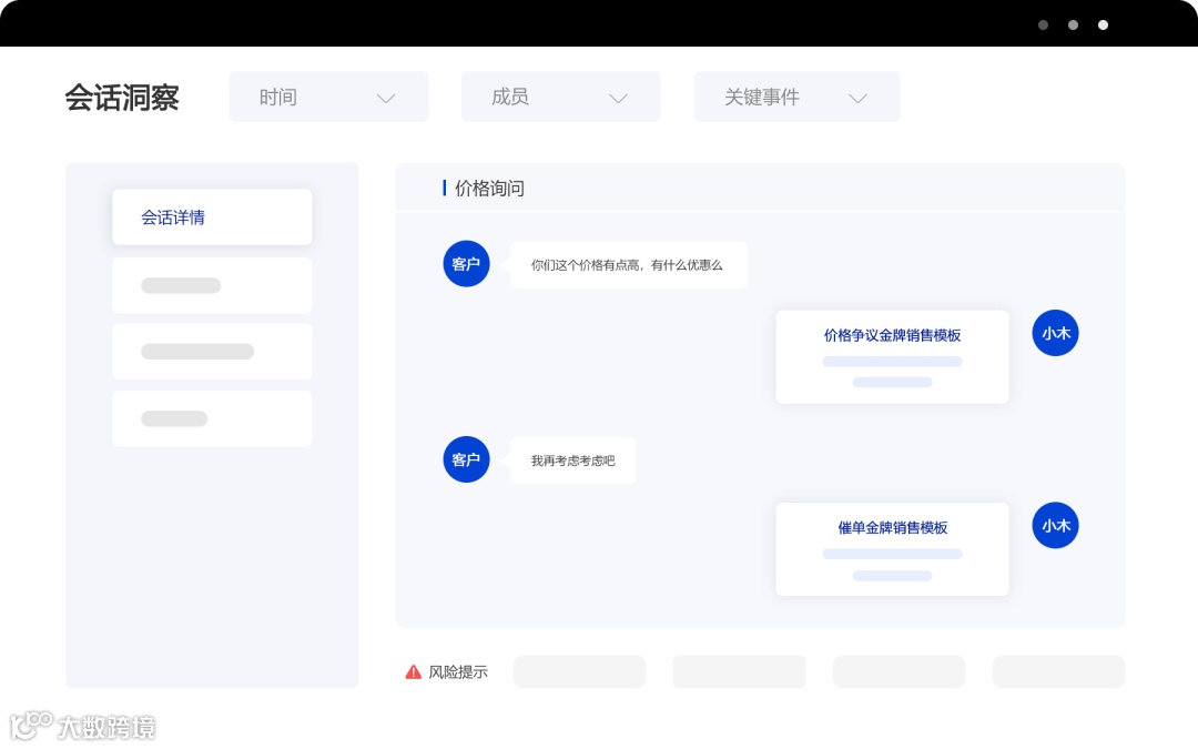 木心智能通过销售赋能平台,挖掘、发现与分析在销售过程中对成单有促进甚至决定性作用的沟通方式,如关键语义、优秀话术和内容等,通过会话挖掘,可规模化挖掘一线销售在实际销售过程中使用的优秀话术用语和知识,并进行智能推荐。