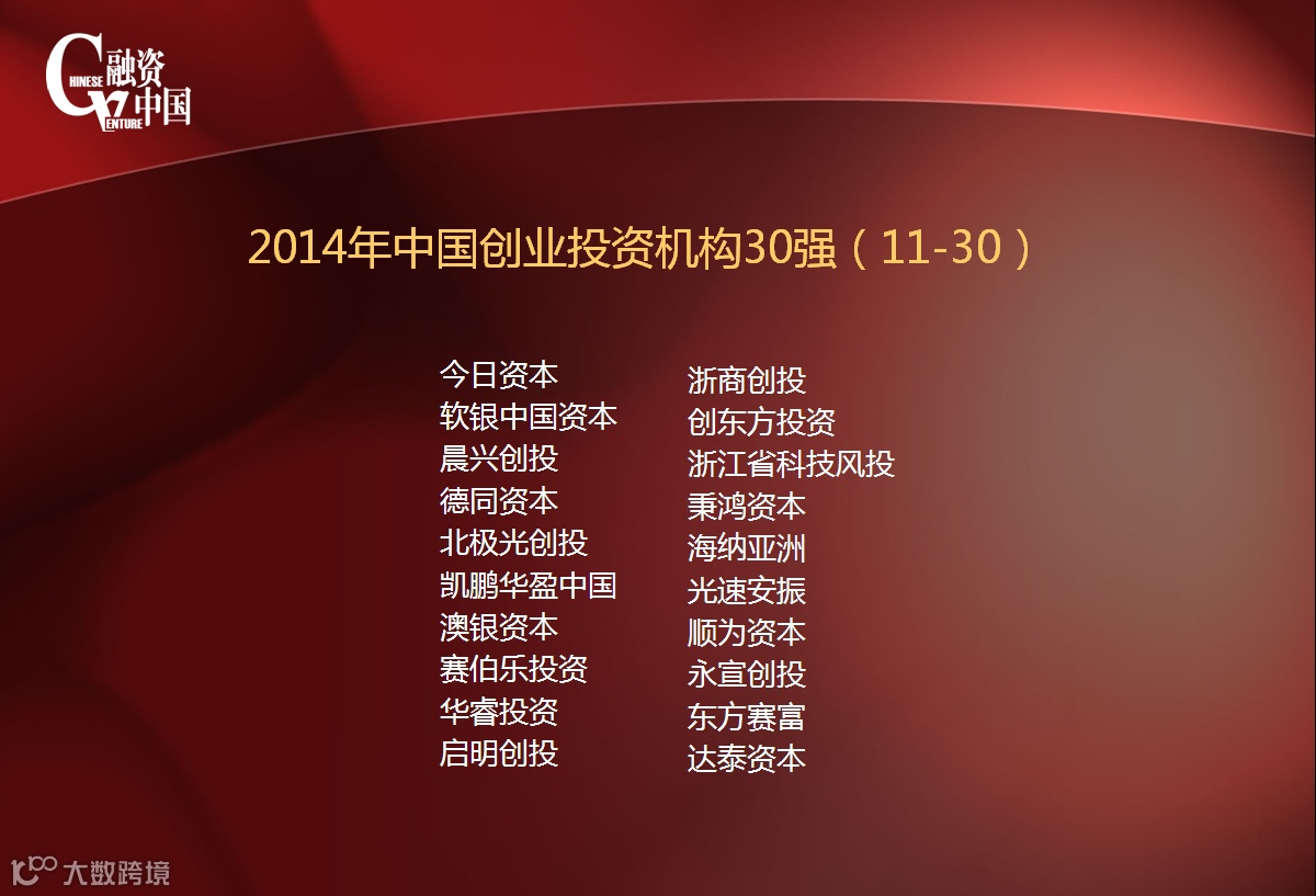 2014年中国创业投资机构30强(11-30)