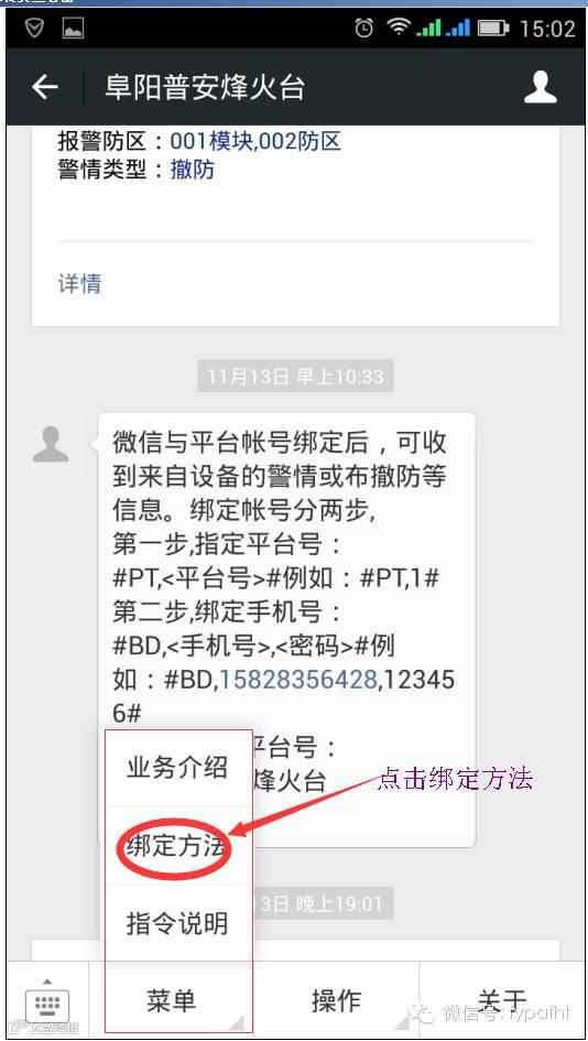为更好的提供110联网保全报警服务,同时也与时俱进响应国家互联网+的时代浪潮,而且工信部也多次三令五申的关闭群发短信平台。微信越来越深入人们的生活,现普安烽火台接警中心作出调整,将鼓励用户加入、绑定我公司微信公众平台,不仅仅可以随时可以接收到报警设备的布撤防信息、掌握报警设备的实时动态,而且即将开发出远程布撤防及多个功能。(微信公众平台为智能化平台,按照指令工作,非人为操作)