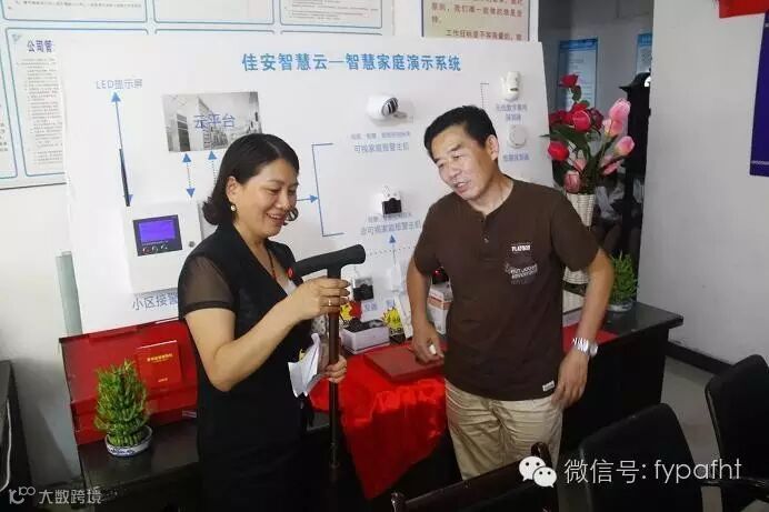 项目总监张总在演示手杖式跌倒报警器