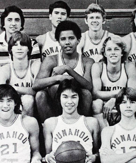 1979年,奥巴马的母校普纳荷学校的年鉴中,奥巴马与其他篮球队队员的合影。