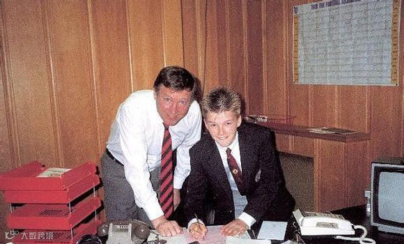 14岁的贝克汉姆和曼联签约。