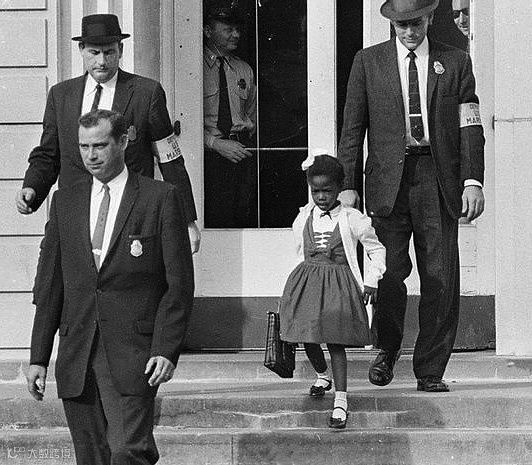 最牛叉的黑人家族。1960年,美国南方第一个进入白人小学的非裔美国人Ruby Bridges。好多保镖。