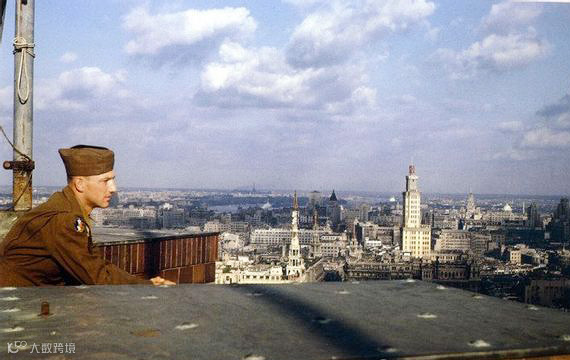 1945年,飞虎队成员在上海国际饭店遥望上海。
