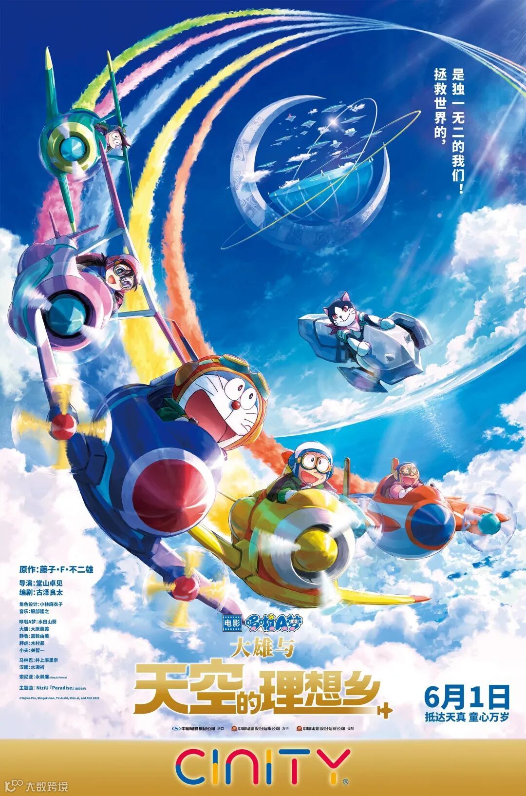 6月1日,赶紧选座CINITY影厅,一起通过《哆啦A梦:大雄与天空的理想乡》唤醒童年,抵达天真。