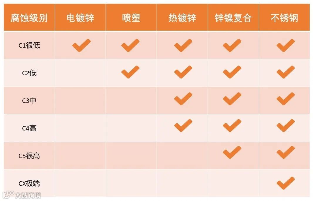 企业可根据工程环境的腐蚀程度、使用年限以及预算等选择合适的防腐表面处理或材质。