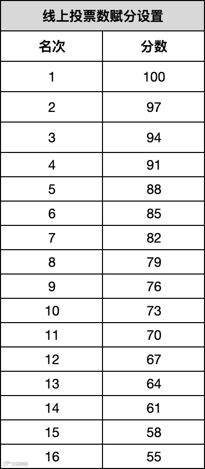 接下来就进入投票阶段。投票分为线上和线下,两项分数相加即为总分。