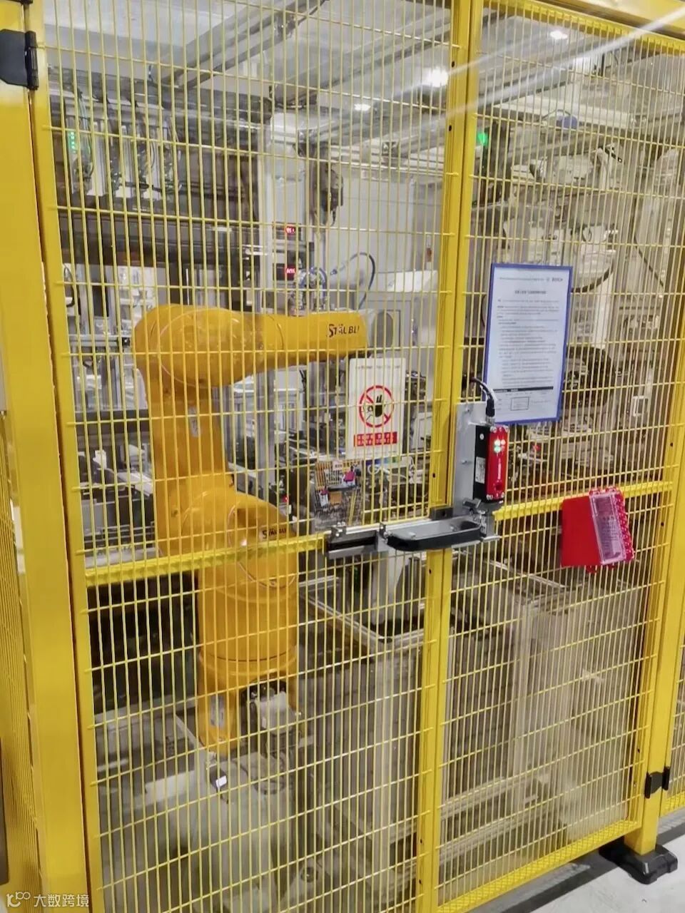 项目是为某大型汽车企业车身门盖自动化产线进行安全围栏安装。安全围栏采用经典的黄黑配色,同时根据设备的位置采用不同尺寸的定制围栏;另外项目配备纬诚的智能安全物联网锁和人脸识别模块,内嵌智能LOTO上锁挂牌程序逻辑,能有效避免因人的因素导致LOTO失效事故。