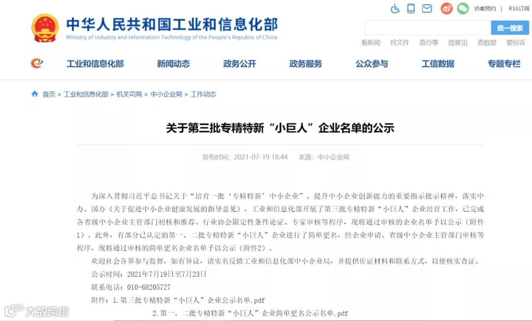 近日,国家工业和信息化部发布了《第三批专精特新"小巨人"企业名单的公示》,