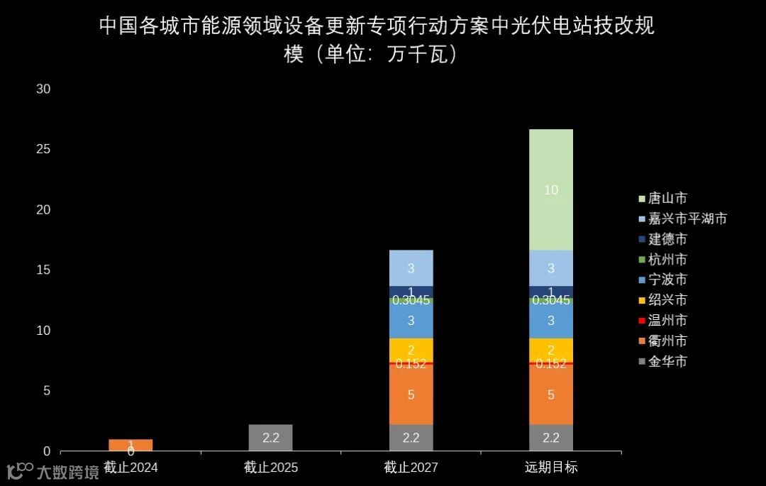 2024年,浙江省湖州、金华、衢州、温州、绍兴、宁波、杭州及嘉兴平湖发布了能源领域设备更新专项行动方案,推动投产超10年、板功率低于250瓦、能源转化效率低于18%-20%的光伏组件以大代小。