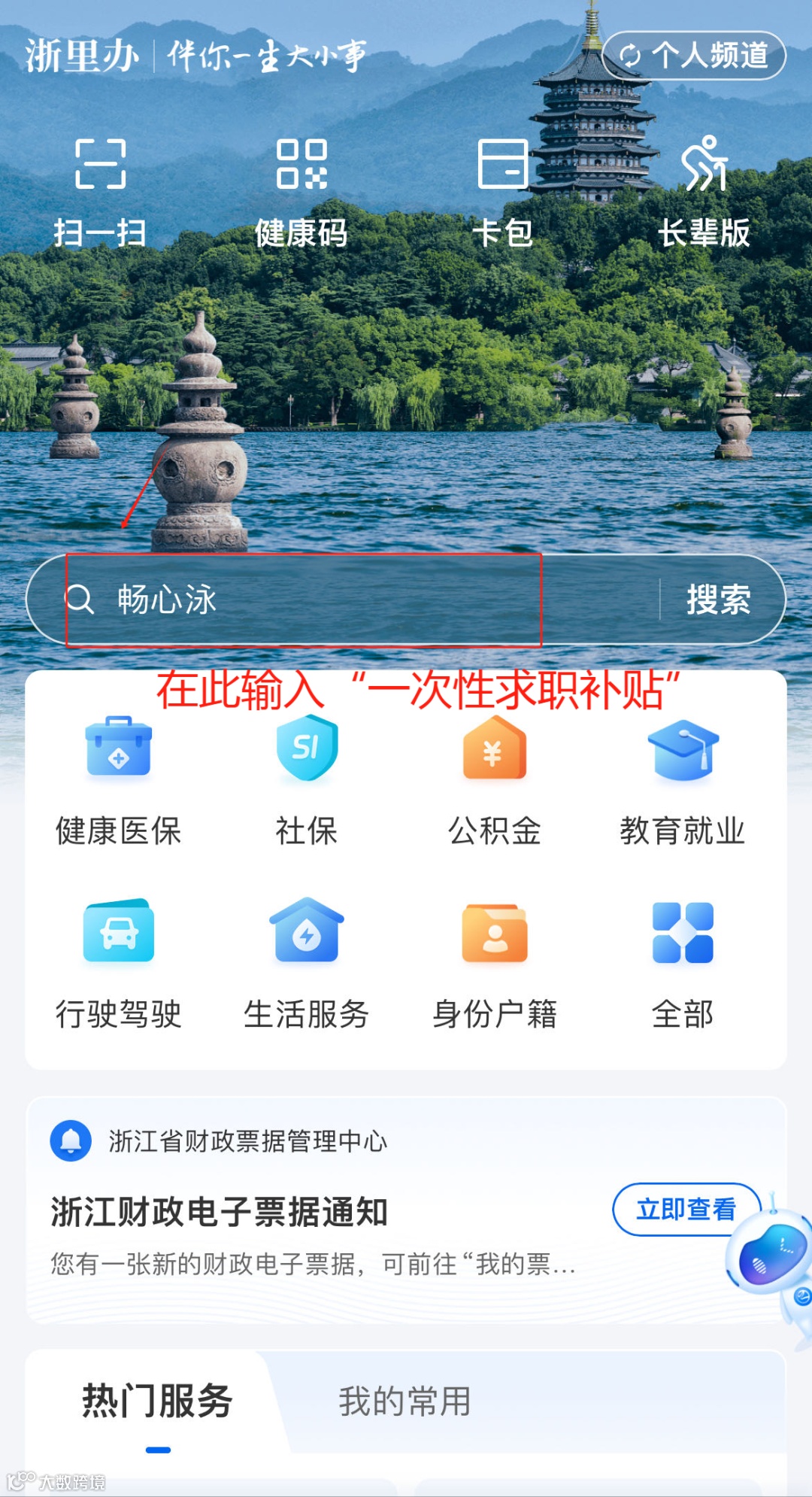 浙里办APP输入“一次性求职补贴”。