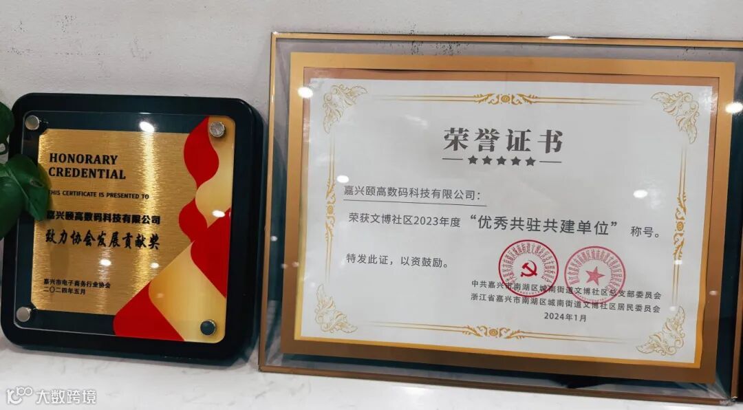 嘉兴颐高在各方行业领域中获得认可和好评:荣获嘉兴市电子商务行业协会颁发的“致力协会发展贡献奖”、获得城南街道表彰的年度先进集体及文博社区“优秀共驻共建单位”称号等荣誉。