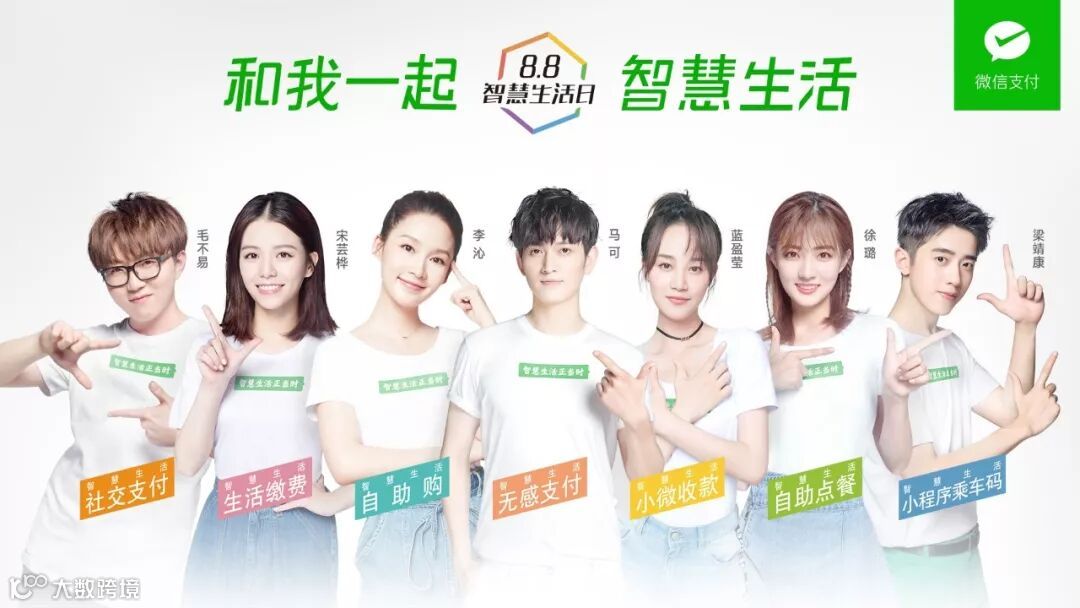 为了进一步普及智慧生活的理念,微信支付邀请了郑恺、马可、蓝盈莹、李沁、徐璐、毛不易、宋芸桦、梁靖康一共 8 位社会公众人物,一起倡导由 8 大核心能力构筑起的生活新方式。