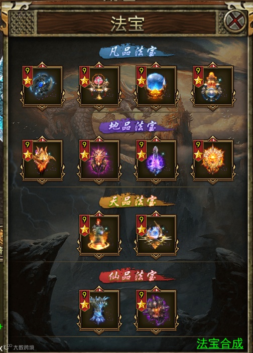 「焚天法地」玩法,主要获取法宝升星的材料,不同层数进入要求不同,分本服层和跨服层。