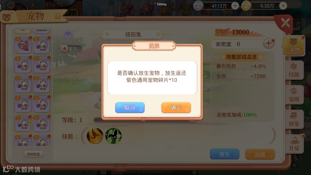 (PS:更新后宠物放生会转化成升星碎片,之前放生宠物会默认全部召回)