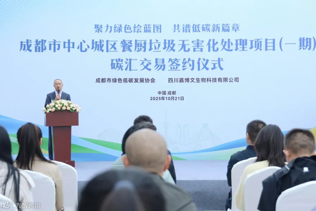10月21日,成都市中心城区餐厨垃圾无害化处理项目(一期)碳汇交易签约仪式在成都举行。项目运营方四川嘉博文生物科技有限公司与成都市绿色低碳发展协会签署协议,完成基于“碳惠天府”机制开发的21718吨碳减排量认购,标志着全国餐厨废弃物处理行业首个“万吨级”碳减排项目成功实现价值转化。