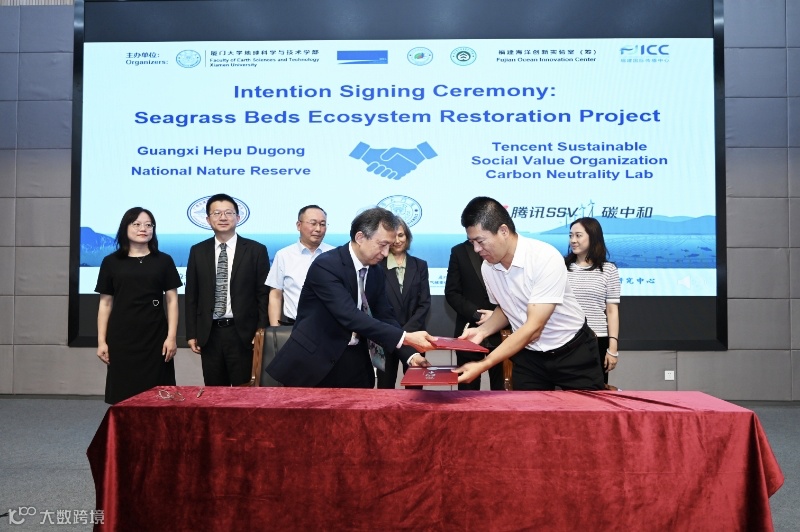 6月7日,腾讯碳中和实验室和广西儒艮保护区举行海草床生态修复项目蓝碳生态系统碳汇意向认购签约仪式,儒艮保护区第一期28.12公顷的海草床修复项目自2018年11月30日以来产生的所有碳汇量,将全部由腾讯碳中和实验室意向认购。