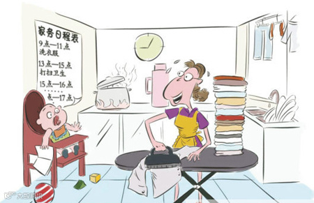 这时小孩要人照顾,请保姆每月要2000元,男的女的商量后决定女的辞职,专心照顾宝宝,女的做起了全职太太。