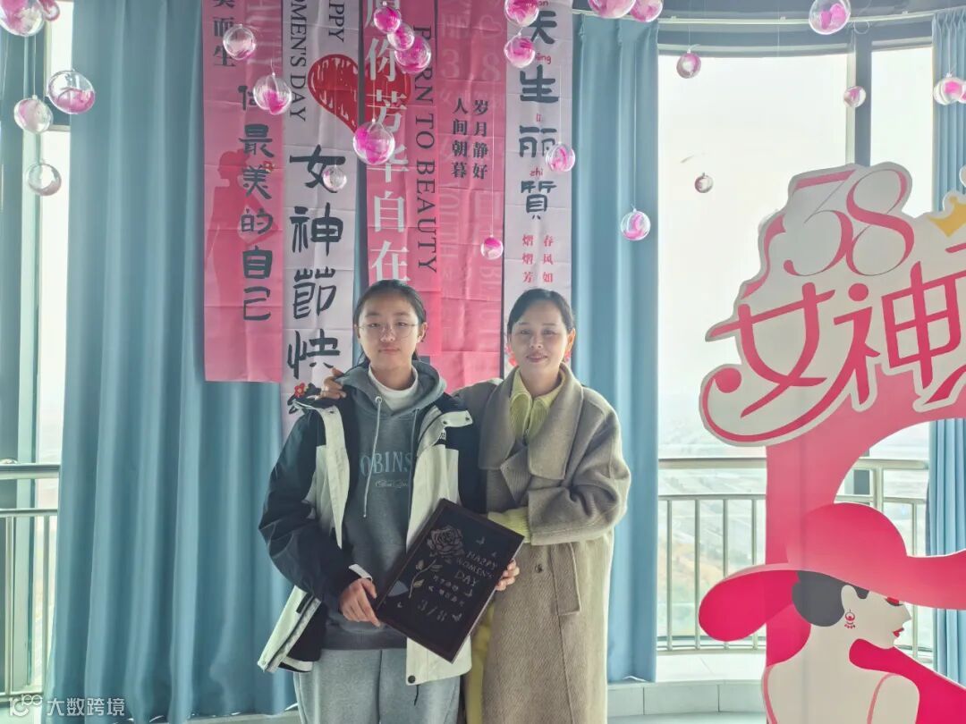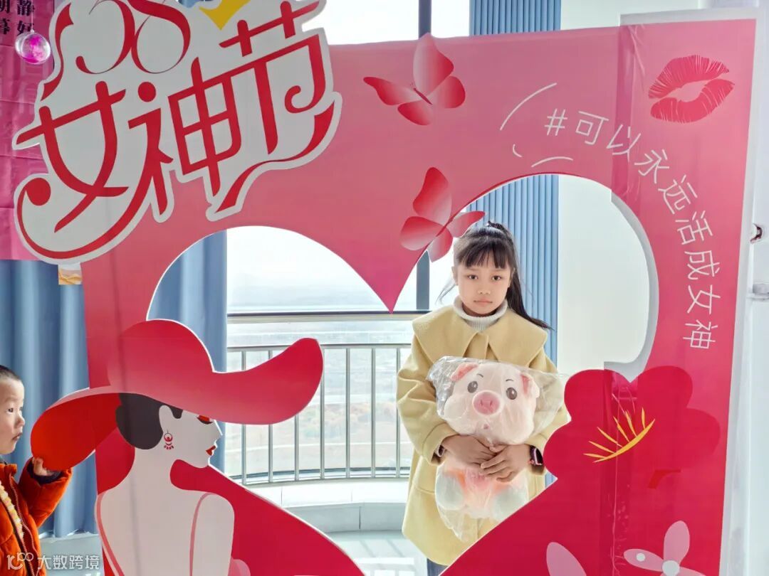 专属拍照区:定做的女神打卡相框、女神节条幅,留下了她们的高光时刻~
