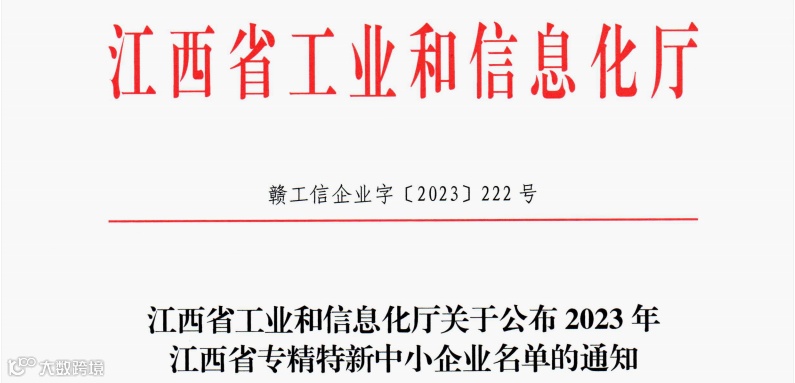 近期,江西省工业和信息化厅发文(赣工信企业字【2023】222号)《关于2023年江西省“专精特新”中小企业名单公示》,公示了2023年江西省“专精特新”中小企业名单,江西渝融云安全科技有限公司成功入选省级“专精特新”中小企业。