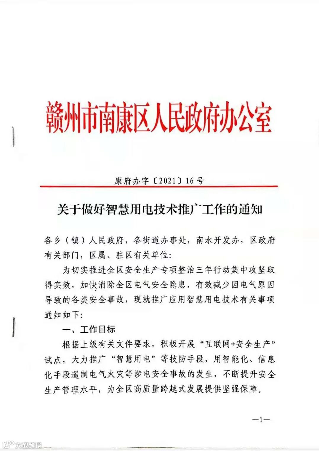根据区康府办字〔2021〕16号文件要求,智慧用电推广目前四家入围供应商的设备方可完成平台对接,区智慧用电平台将向安装设备的用户派发平台接入的《认证证书》,后续执法检查将以此为依据,现将区政府文件、平台《认证证书》及区电视台报道附后,请各企业认真甄别。