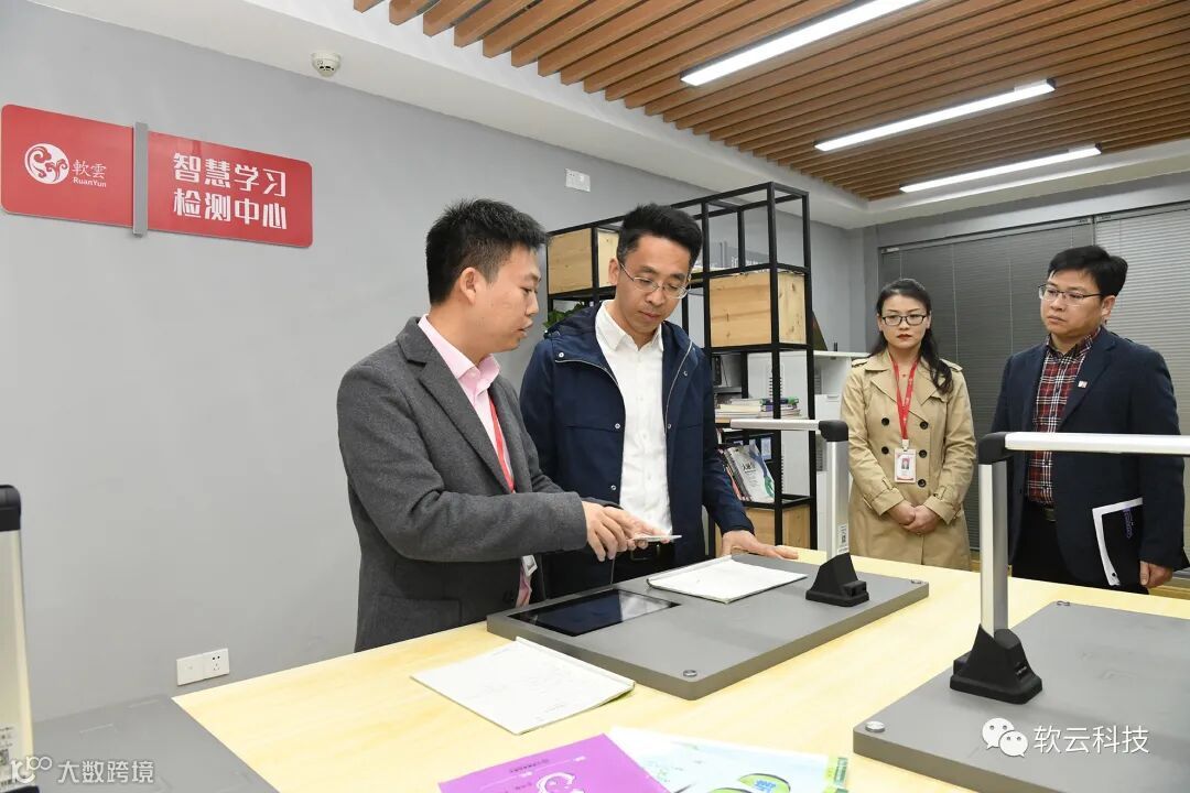 王万征首先参观了软云科技智慧教育展示厅,详细了解企业发展情况及“智慧作业”“智慧考试”两大特色业务板块的相关介绍,并亲自体验了“智慧作业”平台作业采集及使用流程。对软云科技在智慧教育项目上的建设、所取得的成绩给予了充分肯定。