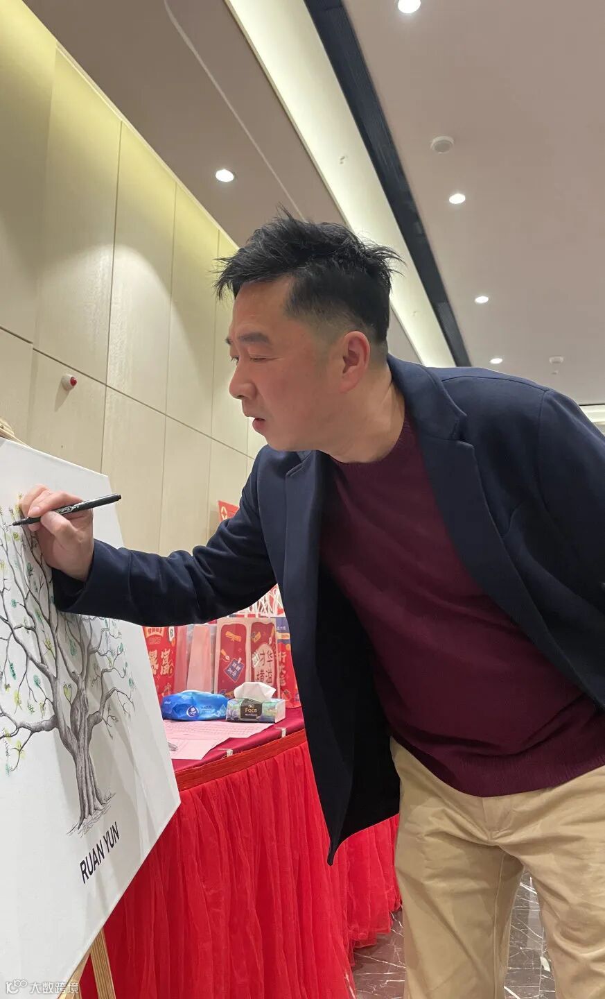 本次年会采用独特的指纹印画打卡形式,每位员工在画布上印上自己的指纹并签名,最终绘制出一幅参天大树。这不仅是一幅艺术作品,更是对今年年会主题的完美呼应——无论身处何方,软云人都以城市为舞台,快乐工作,携手并进,在各自的岗位上发光发热,共同编织软云梦。