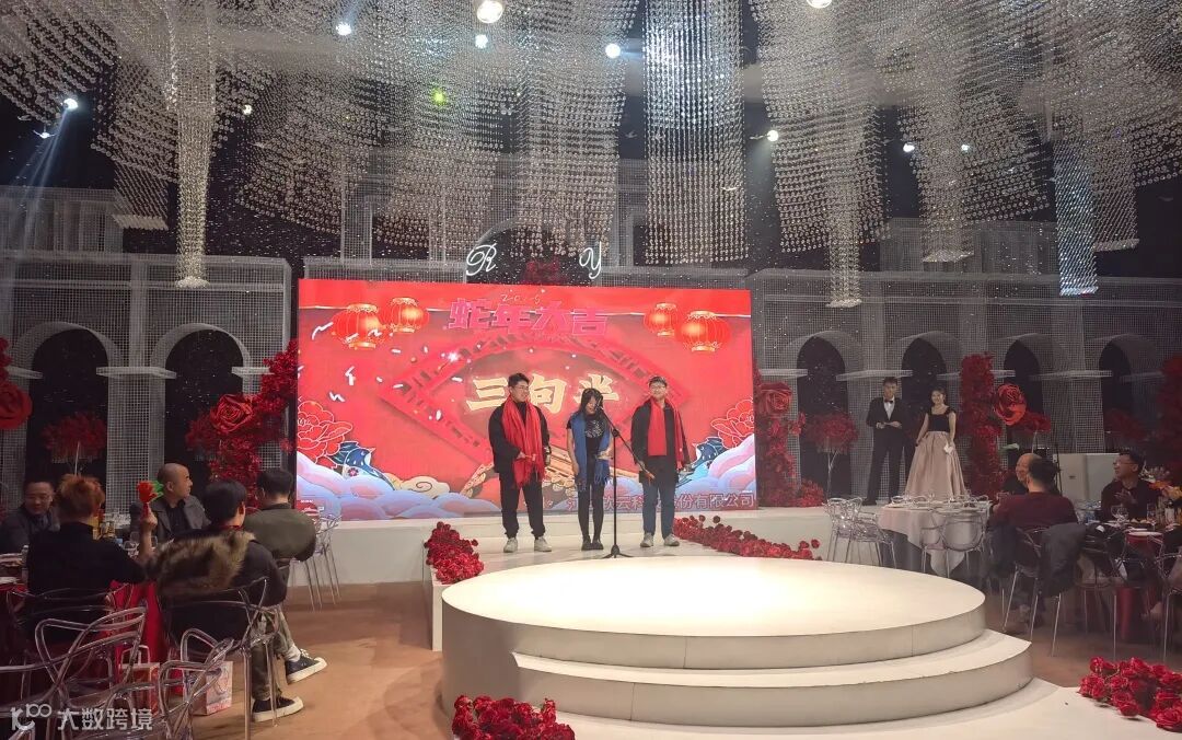 年会的舞台上,丰富多彩的节目表演和紧张刺激的互动环节将现场气氛推向了一个又一个高潮。开场的有氧鼓表演振奋人心,鼓点激昂,瞬间点燃了现场的氛围。经典歌曲串烧则让人重温那些难忘的旋律,仿佛回到了那些与音乐相伴的青春岁月。而幽默诙谐的“三句半”表演更是让现场笑声不断,掌声雷动。