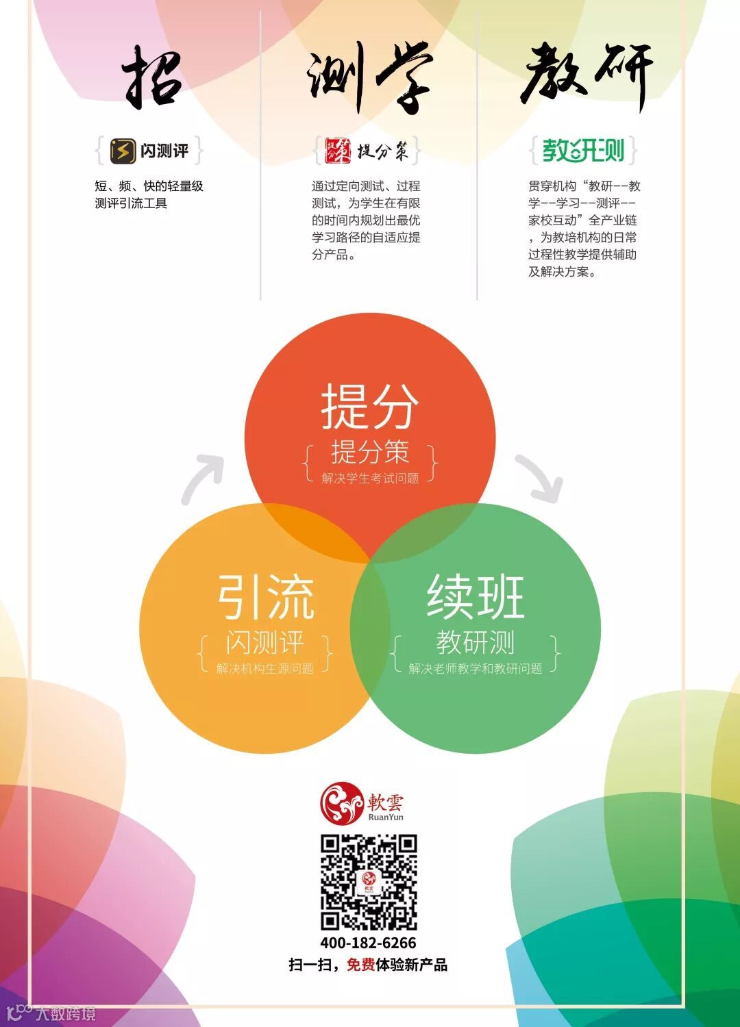 软云科技多年来专注教育领域,致力于成为国内一流的以测评为核心的大数据教育服务提供商。其终结性诊断平台——提分策;短、频、快的轻量级测评工具——闪测评;测评教研教学诊断平台——教研测等产品的研发初衷就是为了顺应和成就个性化学习成长这一教育潮流。