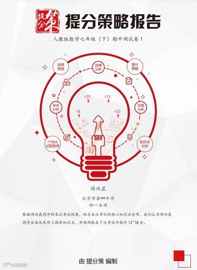 一款以“考试测评”为突破口,通过智能测评、大数据分析等科学手段,为学生定制个性化提分策略的学习产品。它包含“成绩预测”、“五大分析”、“提分策略”和“个性化题集”四大模块。一卷上传,科学评价及靶向策略即刻送达,真正实现了学生的个性化学习和辅导。