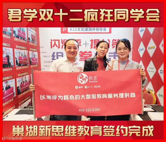 2018年10月31日,由君学书院举办的第六届“双十二疯狂同学会”于杭州圆满落幕。在为期3天的盛会中,软云科技凭借国内领先的教育科技产品“闪测评”、“提分策”强势吸睛,以实力演绎一场教育科技创新盛宴的同时,软云科技的综合实力也进一步凸显。