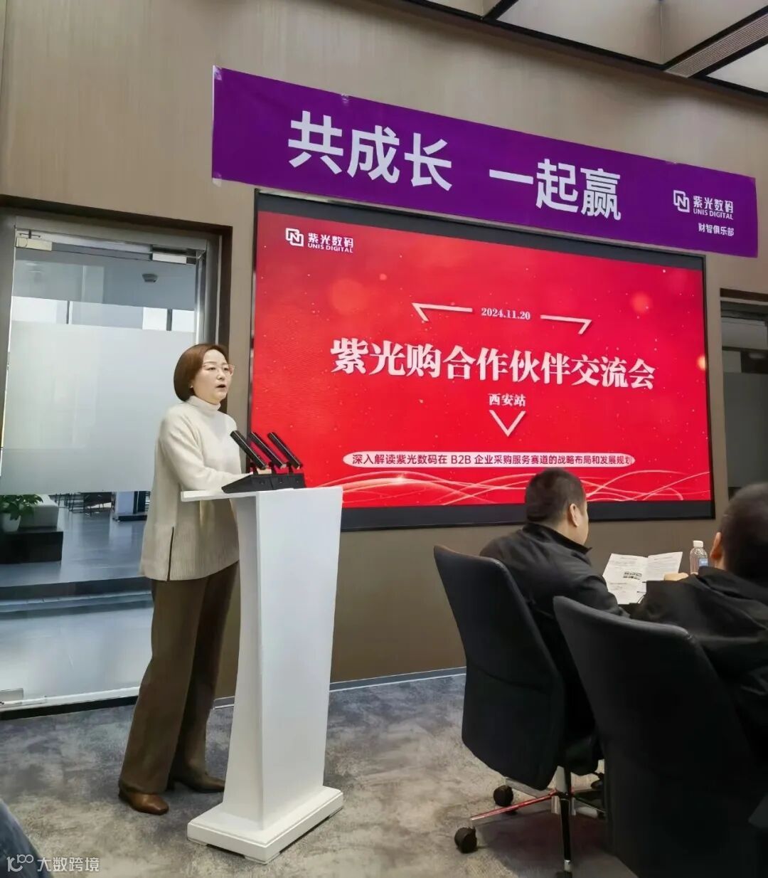 会议首先由紫光数码西北大区总监张娟致词,她表示在当今数字化、智能化的时代,企业采购模式正经历着前所未有的变革。传统采购存在着效率低下、成本高昂等痛点,B2B数字化采购具有的低成本、便利性、高效透明等优势而发展迅猛。希望通过此次会议,拓展与伙伴们的合作领域并打造更加紧密、更加高效的合作网络。